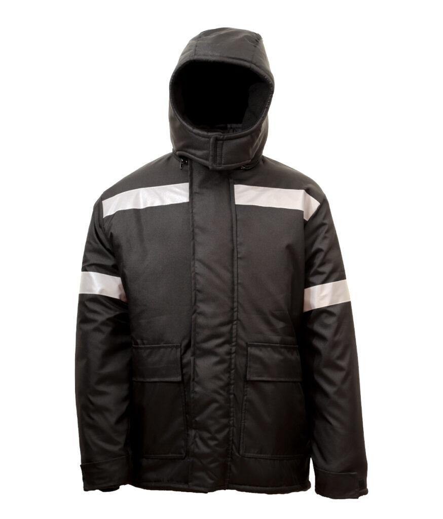 Confeccionada en tela Trucker Forrería de polar matelaseado con guata 200 gr Capucha tapa cierre Puños trampa viento y ajuste externo Bolsillo oculto Reflectivo en manga, espalda y pecho
