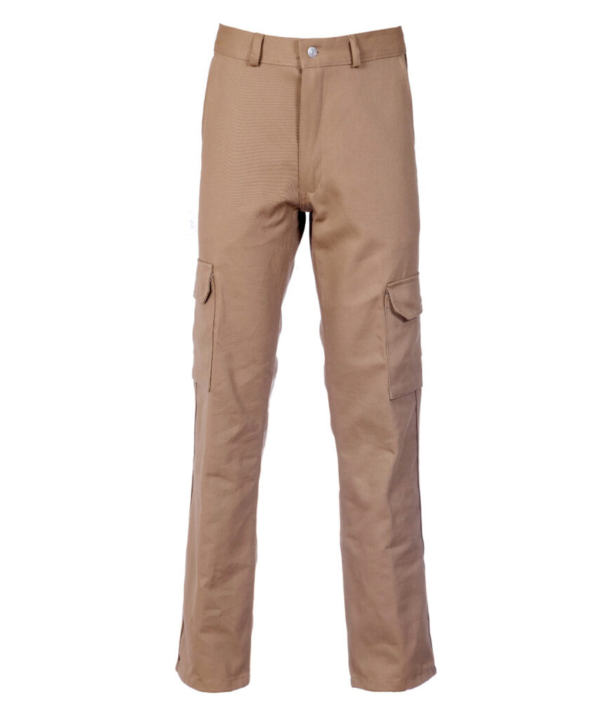 Pantalón Cargo de Gabardina 8oz Con refuerzo y recortes en montura y rodilla Siete bolsillos (2 delanteros, 2 traseros plaque, 2 laterales sobre piernas y 1 frontal) Ideal para trabajar y uso diario Broche metálico y cierre Bolsillos laterales con abrojo